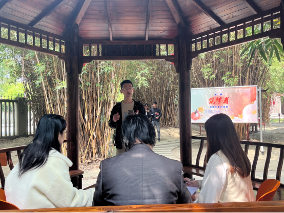 在线下选拔现场,来自多个学院的15组参赛选手为在场同学带来了极富感染力和表现力的精彩表演,有童年至真至善的梦想,深沉浓烈的家国之爱,坚韧雄壮的浩然之气,亦有对美好生活的歌颂赞美 …竹影横斜,微风轻抚,沉浸式朗诵带给评委、选手、观众无与伦比的视听体验。