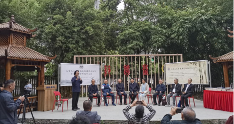 甘霖书记在致辞中表达:有朋自远方来,不亦乐乎!今日国学同道汇聚,可谓:群贤毕至,少长咸集。古有“兰亭修禊”曲水流觞,今有筑梦园雅集,竹木幽香,古今文化一脉相通。虽然连日淫雨霏霏、气温骤降,但我们对中华优秀传统文化的挚爱却如火炬一般温暖人心、照亮天地。甘书记代表学院衷心感谢“成都国学研究会”在唐臣书院设立“国学传习基地”,这是对书院的厚爱与信任,必将有力地促进唐臣书院文化育人、培根铸魂工作,为培育具有文化自信、志向远大、热爱祖国、胸怀天下的科技先锋、学术翘楚注入强大的国学力量。为此,唐臣书院师生将倍加珍惜,建设好、发挥好“国学传习基地”,让优质的文化资源推动中华优秀传统文化在唐臣书院中传承弘扬、创造性转化、创新性发展,让青年学子不仅在专业方面出类拔萃,还要在国学方面有所涵养……随后,程建忠会长与甘霖书记在大家热烈的掌声中共同为“成都国学研究会国学传习基地”揭牌。
