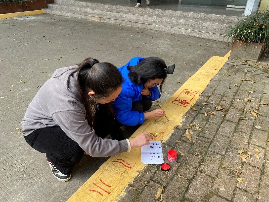 2023年12月7日,是二十四节气中的“大雪”。驻院导师甘霖、孟涵、任凯利三位老师与“卓尔国学社”梁雨欣、陈俊妮、杨昊东,“双卓越”培养项目党员吴佳朔和院刊《唐臣青年》编辑部施羽、书院学生自管会王晓波六位同学合作在唐臣书院门前两侧的路沿上,用小篆绘制了别具一格的二十四节气,旨在通过书写二十四节气的方式,传承和弘扬中华优秀传统文化。