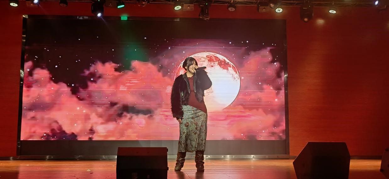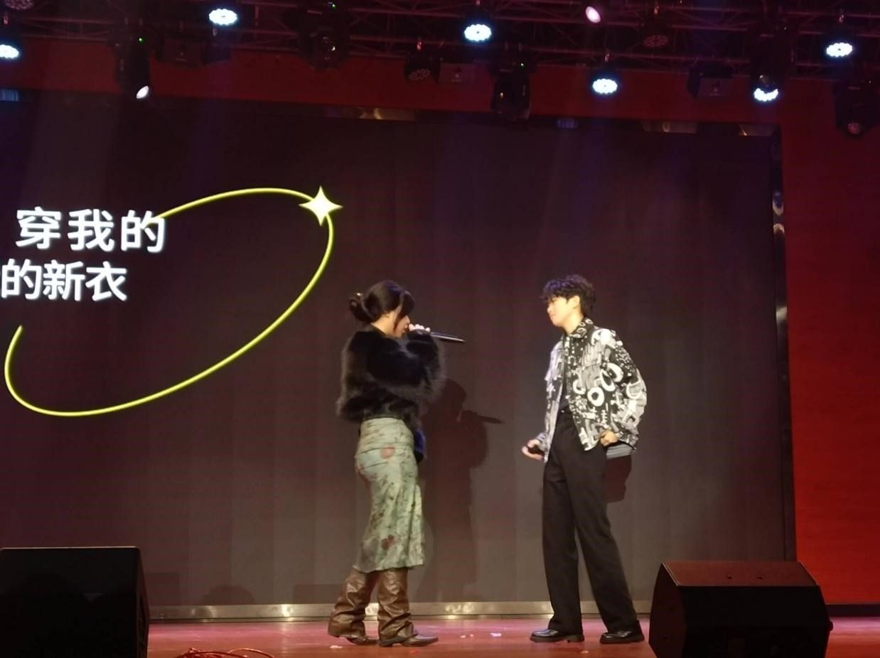 紧接着,由吴佳朔、依西措同学为我们带来了男女声二重唱《美丽的神话》。历经千年岁月的洗礼,神话以其独特的魅力,照亮了人类文明的发展之路,成为了文化传承、精神信仰、艺术表现的重要体现。万世沧桑、悲欢岁月唯有爱是永远的神话;潮起潮落始终不毁真爱的相约,仿佛让我们回到了那个荡气回肠的古典爱情故事中,体会到了穿越千年的爱恋!