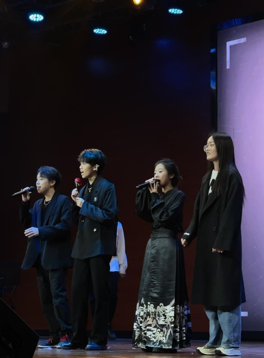 在晚会接近尾声之际,承唐歌友会的路佳怡、廖柯琳、谭洺楷、郭宏宇、倪金熙、薛梦琦、曹楠、陶涵、张誉航、蔡雨彤和阮岚清同学为在场观众准备了一首惊喜串烧。或许你“愿化作望断天涯的青石”,或许你相信“世间最毒的仇恨是有缘却无份”,亦或许“天青色在等烟雨”而你在等属于你的ta,但没关系,因为你总会相信“等到风景都看透”,总会有人愿意陪你看尽细水长流。