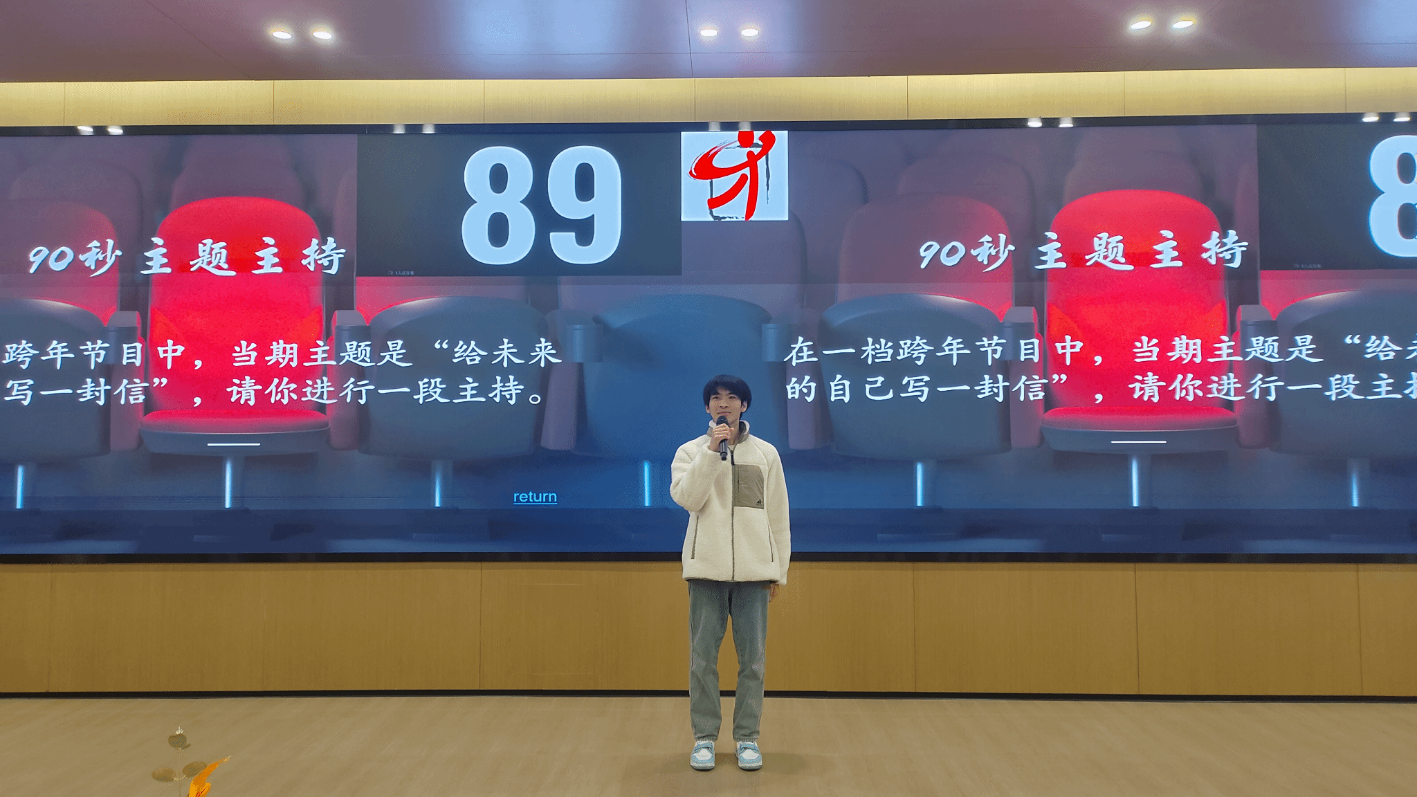 比赛进入了最后的挑战环节——即兴评述。在这一阶段,每位选手将现场抽取题目,然后面对题目内容进行90秒的现场评述。这个环节旨在考察选手们在压力下的表达能力,并展示他们的主持才能和知识储备。选手们抽到题目后,快速地理清思路,结合个人见解和知识储备,以清晰、简洁而又充满深度的语言表达,对题目内容进行现场评述。