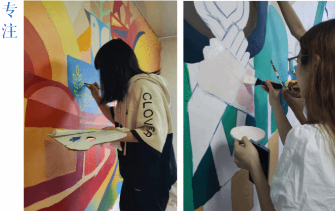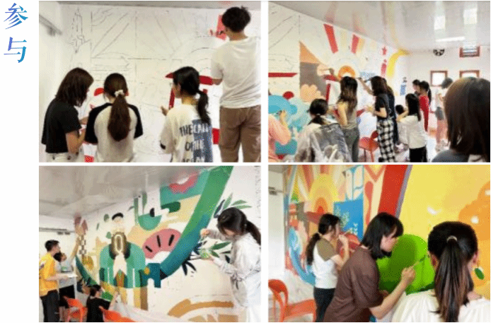 的师生们热情高涨,纷纷投入到墙绘的设计和绘制工作中。参与的同学分别来自物理科学与技术学院、外国语学院、生命科学与工程学院、环境科学与工程学院、人文学院、土木学院、建筑学院、心理研究与咨询中心。同学们利用课余时间,用自己的创意和才华,将普通的校园墙面变成了充满艺术气息的作品。这些墙绘不仅展现了同学们的艺术才能,每个精心绘制的色块,更是体现了当代大学生对美的追求和对校园文化的热爱。同时这种跨学科、跨专业的参与也促进了不同学院学生之间的交流与合作。