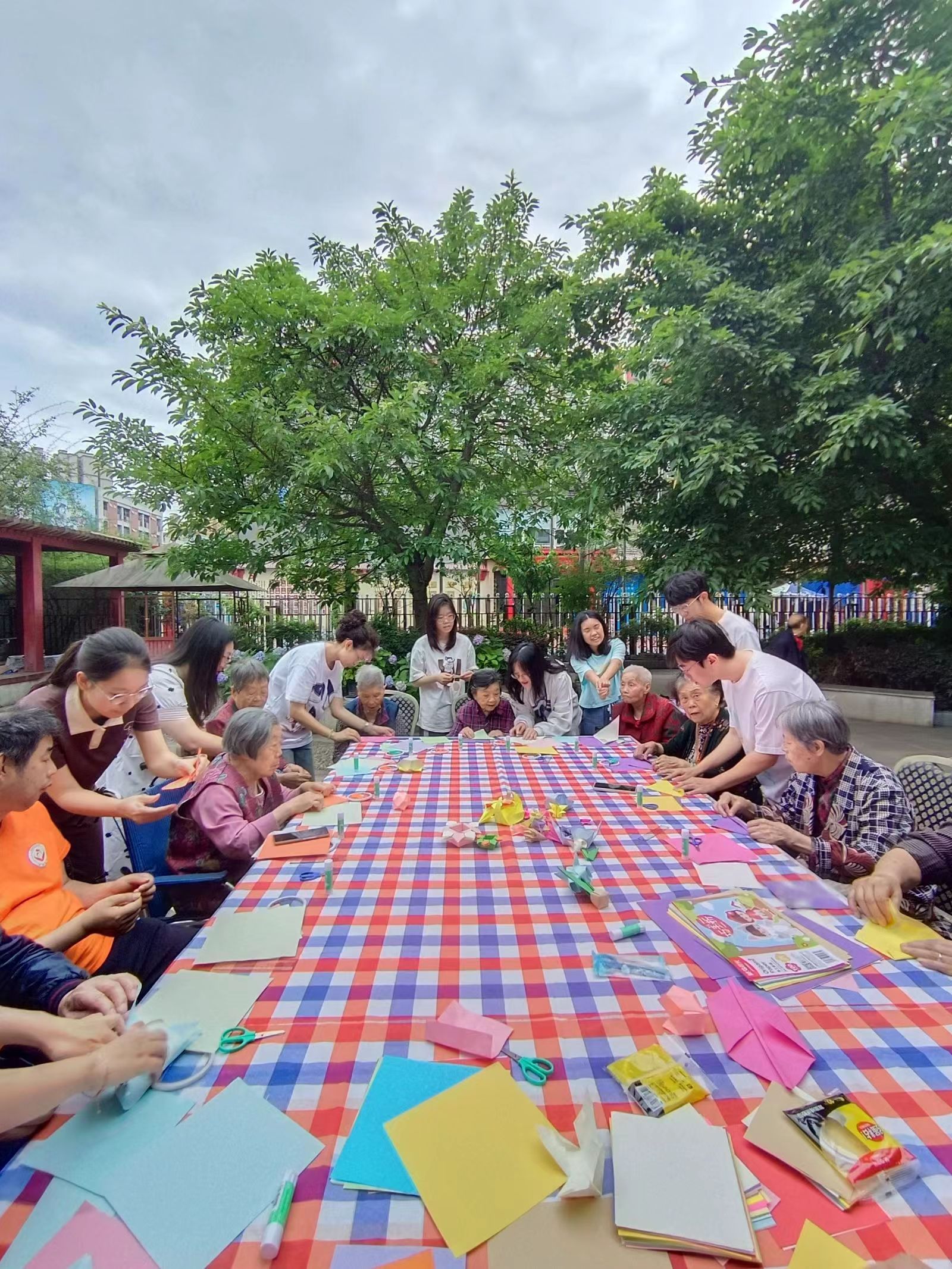 折纸活动结束时,每位老人都完成了自己的折纸。他们展示着自己的作品,脸上洋溢着满足和自豪的笑容。这个过程中,我们不仅传递了折纸的手艺,更传递了我们对老人们的关爱和陪伴。