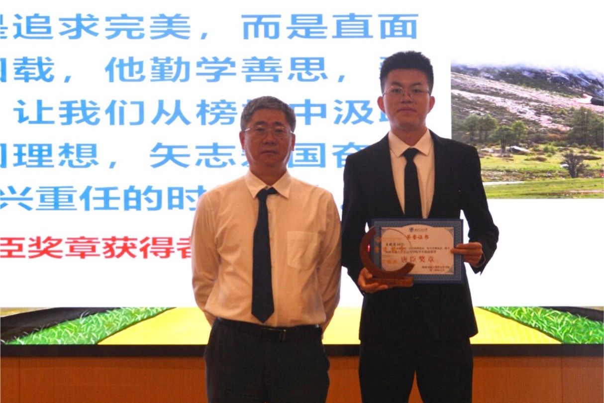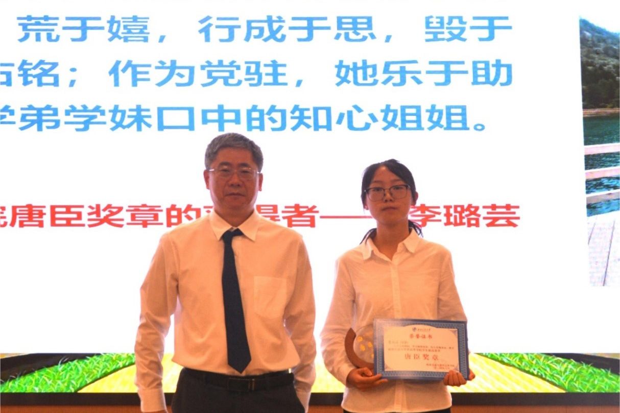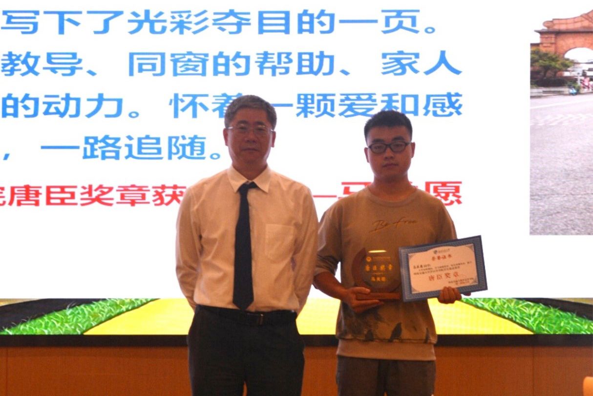 接下来,进入毕业荣誉典礼的表彰环节。校长助理、教务处处长、av影片 常务副院长崔凯宣读学院2024届学生最高荣誉“唐臣奖章”表彰文件,并由康国政院长对7位获得唐臣奖章的毕业生颁发奖杯及证书。