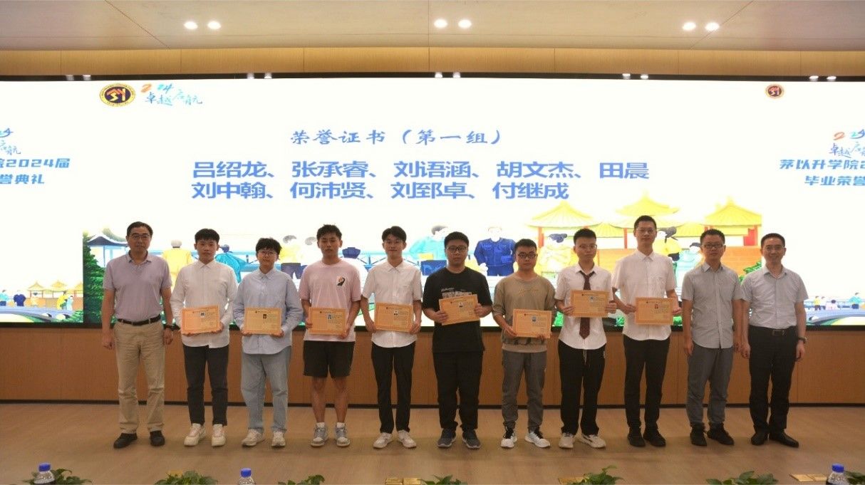 接下来,av影片 党总支书记李毅宣读学院2024届毕业生“特优荣誉证书”、“荣誉证书”表彰文件。由校长助理、教务处处长、av影片 常务副院长崔凯为获得特优荣誉证书6位同学颁发证书;由招生就业处陈岩峰处长、教务处康锐副处长、土木工程学院茅班班导师魏江涛副教授,校团委副书记李娜、机械学院副院长田怀文教授、建筑学院茅班班导师代表熊瑛副教授,图书馆副馆长陈丽华、地球科学与工程学院党委副书记郑波、电气工程学院学生支持办公室主任张婷婷,分别为获得本科毕业生“荣誉证书”的29位同学颁奖。