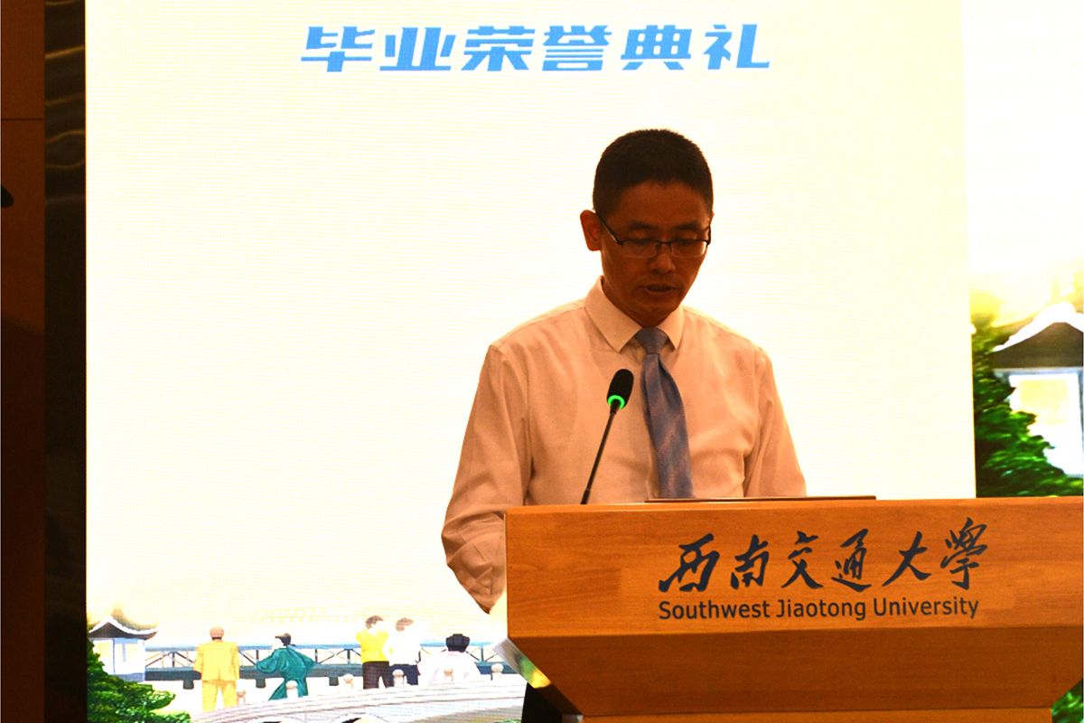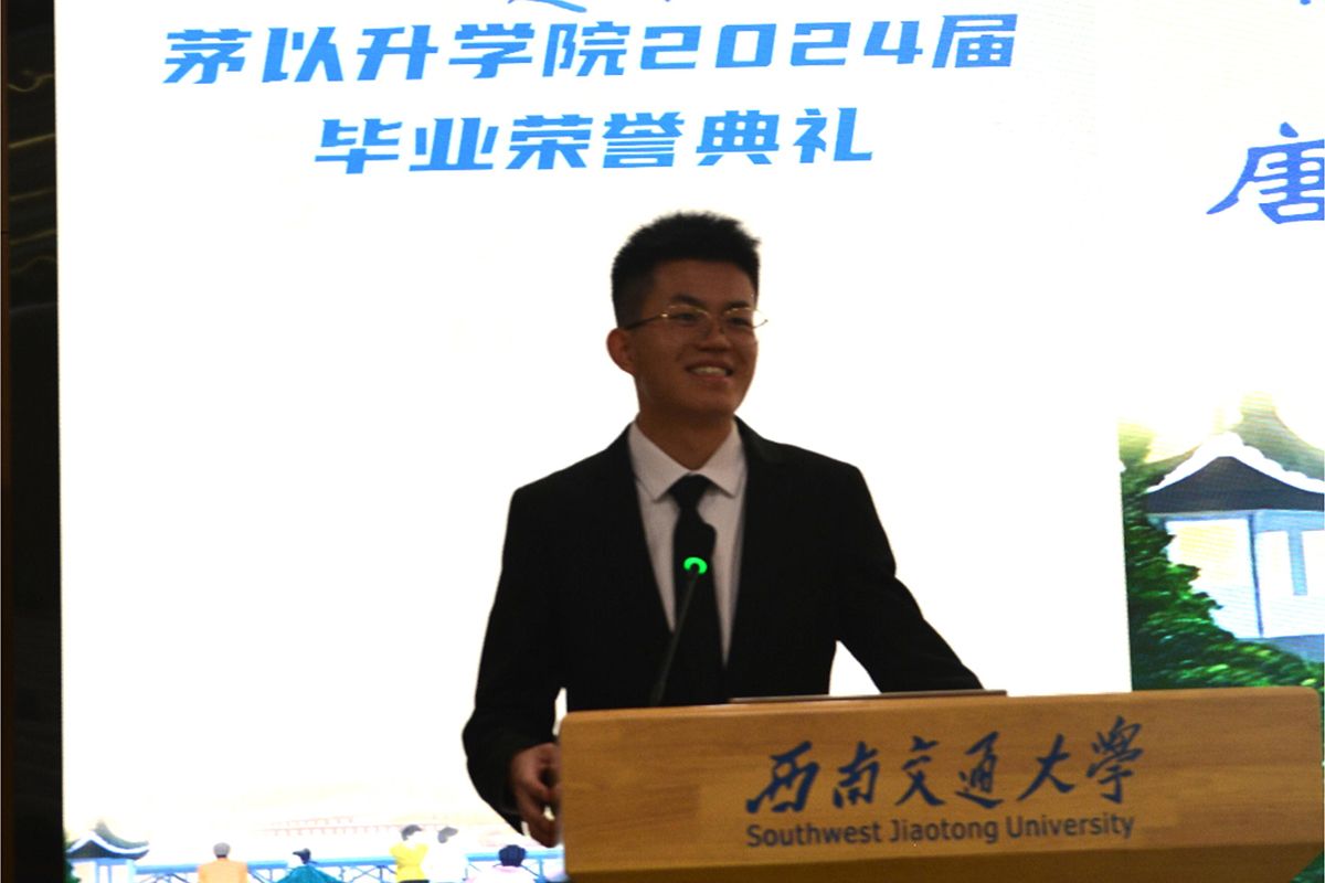 2024620日上午,二零二四·卓越启航——av影片 2024届本科生毕业荣誉典礼于犀浦校区图书馆一号报告厅隆重举行。出席典礼的领导、老师和嘉宾有:av影片 副校长、av影片 院长康国政教授,av影片 校长助理、教务处处长、av影片 常务副院长崔凯教授,招生就业处陈岩峰处长,保卫处(武装部)钱晓群处长(部长),教务处康锐副处长,校团委李娜副书记,图书馆陈丽华副馆长,党委学生工作部园区学生管理科高鹏科长,后勤保障部公寓管理与服务中心杨明星主任;相关学院的领导和老师:土木工程学院茅班导师魏江涛副教授,机械工程学院副院长田怀文教授、2020级茅班辅导员段红林,电气工程学院学生支持办公室主任张婷婷,计算机与人工智能学院党委副书记肖静,材料科学与工程学院学生工作组本科生负责人郑纪伟,地球科学与工程学院党委副书记郑波、学生工作组副组长杨都强,建筑学院茅班班导师熊瑛副教授;av影片 的领导和老师:av影片 党总支李毅书记,专职组织员孟涵,教务办公室主任王丹,综合办公室主任雷雳;以及唐臣书院宿管员代表唐雪莲,av影片 全体2024届本科毕业生和部分学生家长。毕业荣誉典礼由av影片 党总支副书记杨宏毅主持。