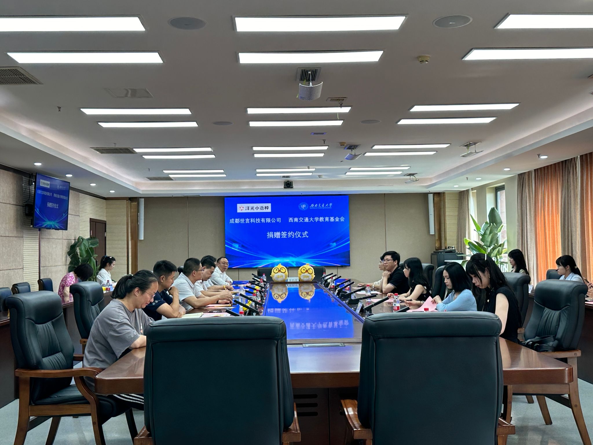 9月4日,成都世言科技有限公司与av影片 在犀浦校区综合楼603会议室举行了教育发展基金捐赠签约仪式,成都世言科技有限公司法人、湖南洋光在线教育科技有限责任公司运营副总马勇政,洋光成都分校红光校区校长肖娇艳,洋光成都分校龙湖校区校长李倩以及洋光成都老师代表和实习生代表,av影片 校长助理、av影片 常务副院长、教务处处长崔凯,招生就业处处长兼校友工作办公室主任陈岩峰,av影片 党总支书记李毅,av影片 党总支副书记、学生工作组组长杨宏毅,合作发展处基金管理科科长高峰及av影片 相关老师参加仪式。此次仪式由av影片 党总支副书记、学生工作组组长杨宏毅主持。