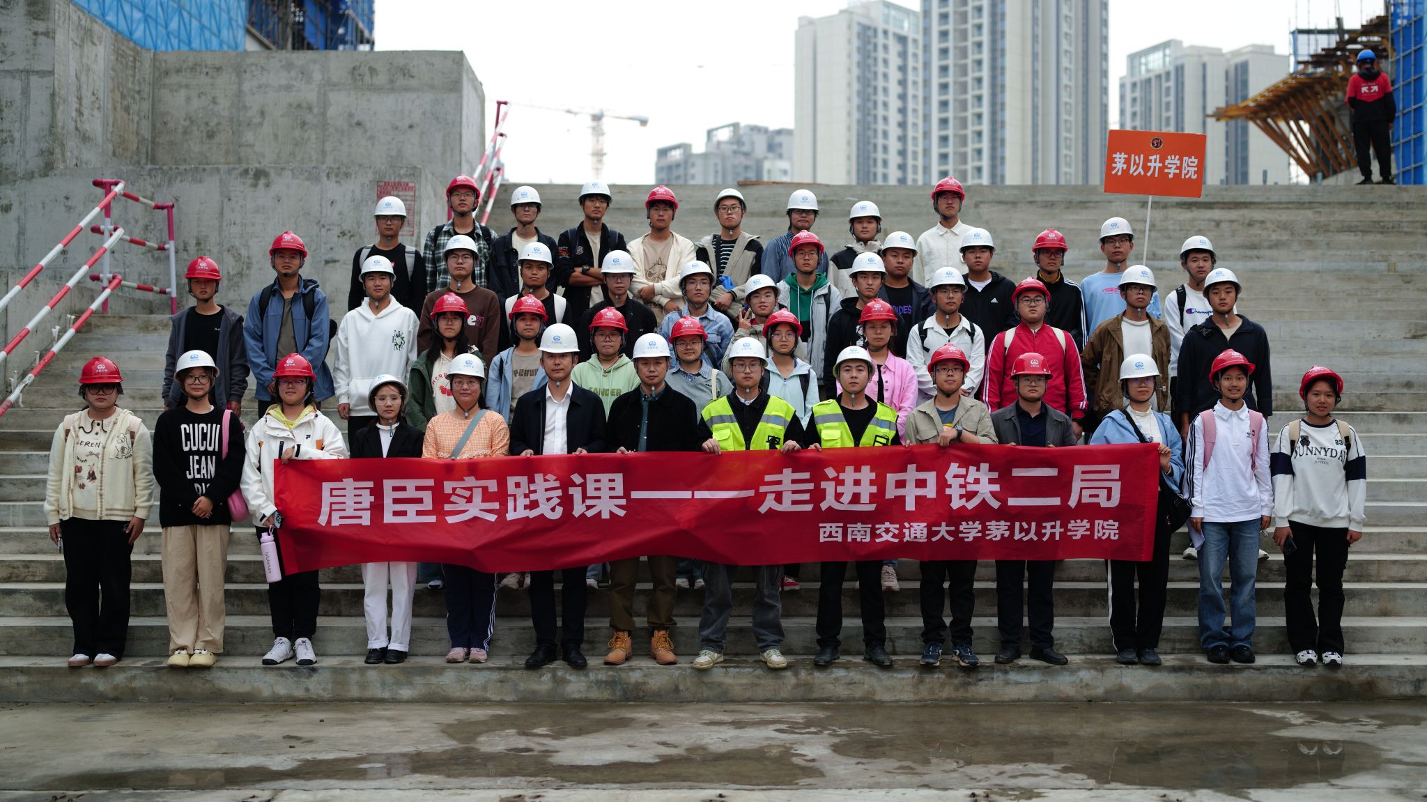 “实践课”第二环节,全体师生来到中铁二局大北项目部施工现场进行实地参观,践行茅以升先生“习而学”工程教育思想。佩戴好安全头盔后,在项目部负责人的带领下,同学们踏入了繁忙而有序的施工现场。同学们积极和项目负责人进行互动交流,通过实地观摩与亲身体验,大家对中铁二局在新型材料应用、工程设计创新、施工技术革新等方面的最新成果有了直观而深刻的认识。