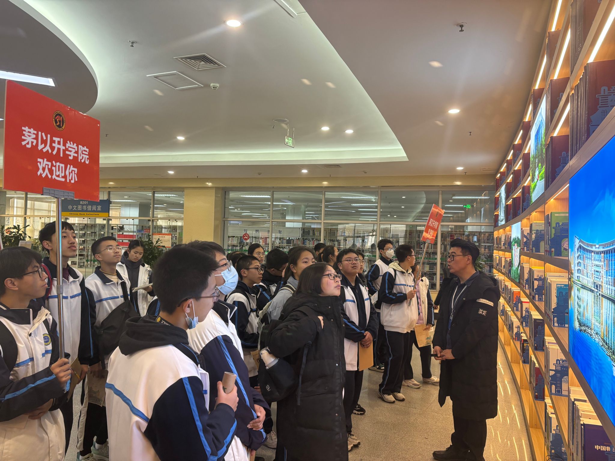 在图书馆,王洋、张万红两位老师化身知识的引路人,带领同学们开启了一场知识宝库的探秘之旅。从二楼富有文化内涵的浮雕文化墙,到宽敞明亮的大厅、藏书丰富的书库,再到三楼长廊、五楼院士长廊、交大文库、铁路告白书以及文化育人与古籍特藏部等,老师们都进行了精彩的讲解。同学们被图书馆浓厚的学术氛围所感染,对未来的大学生活充满了无限憧憬。
