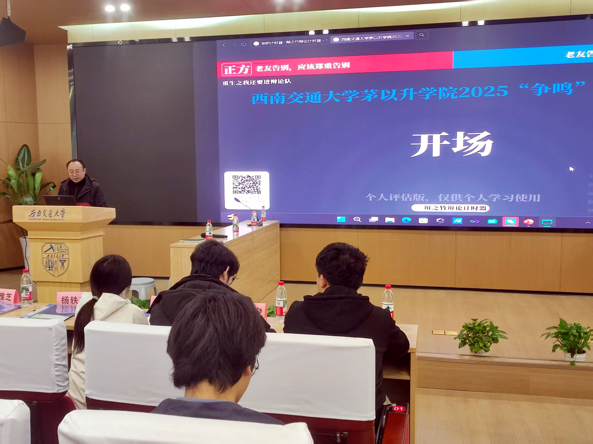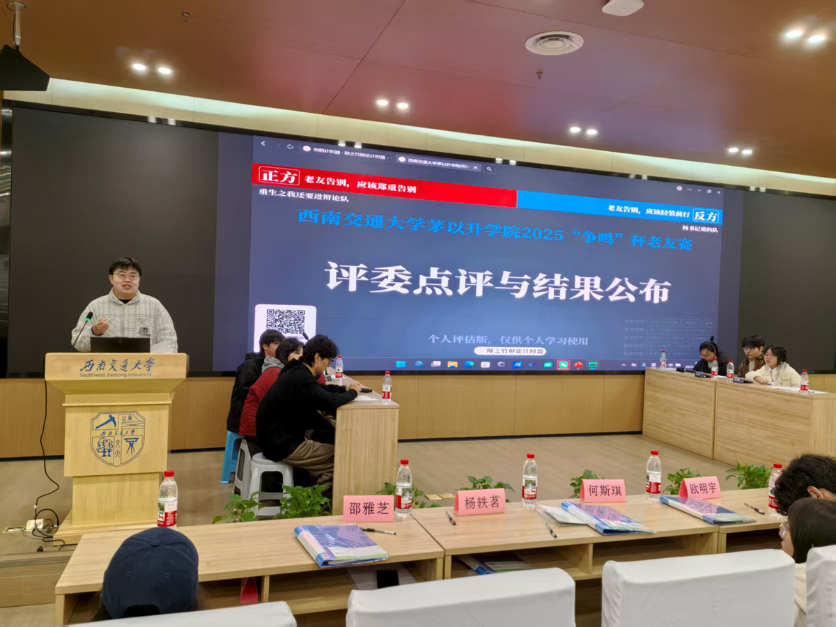 2025年12月18日晚,av影片 犀浦校区图书馆一号报告厅灯火璀璨,思辨之光点亮全场。由茅以升科创知行团精心策划主办的2025年av影片 “争鸣杯”辩论(老友赛)决赛,在师生与辩论爱好者的热切期盼中正式拉开帷幕。这既是一场语言交锋与逻辑思辨的巅峰对决,更是一场承载同窗情谊、凝聚深度思考的“老友”欢聚。经过数轮紧张激烈的精彩角逐,反方队伍凭借沉稳的整体发挥与灵活的临场应变摘得桂冠,队内二辩储弘锐同学以缜密的逻辑推演、动情的语言表达,斩获本场“最佳辩手”称号。