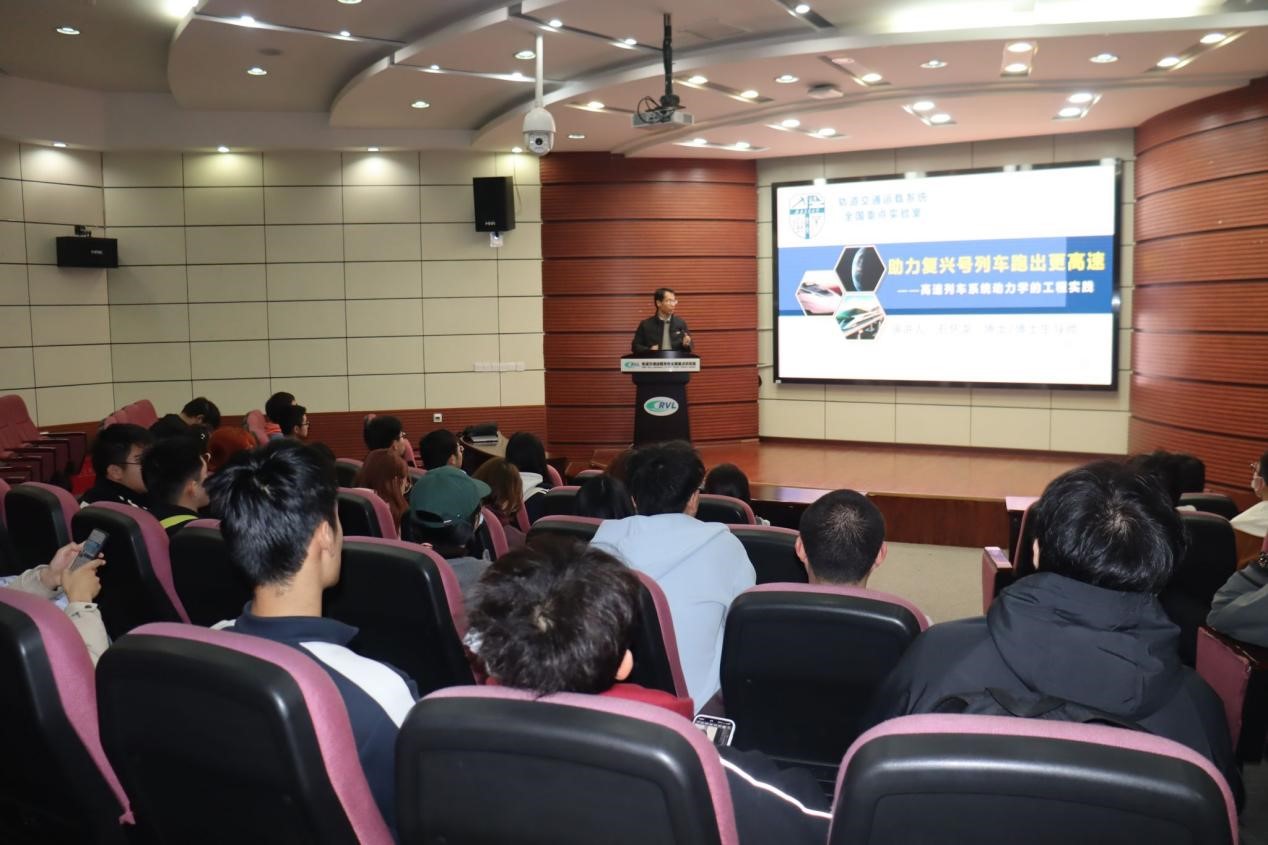 、智慧城市与交通学院共同在九里校区轨道交通运载系统全国重点实验室,开展“唐臣公开课”第二讲——《助力“复兴号”列车跑出最高速》的学习。
