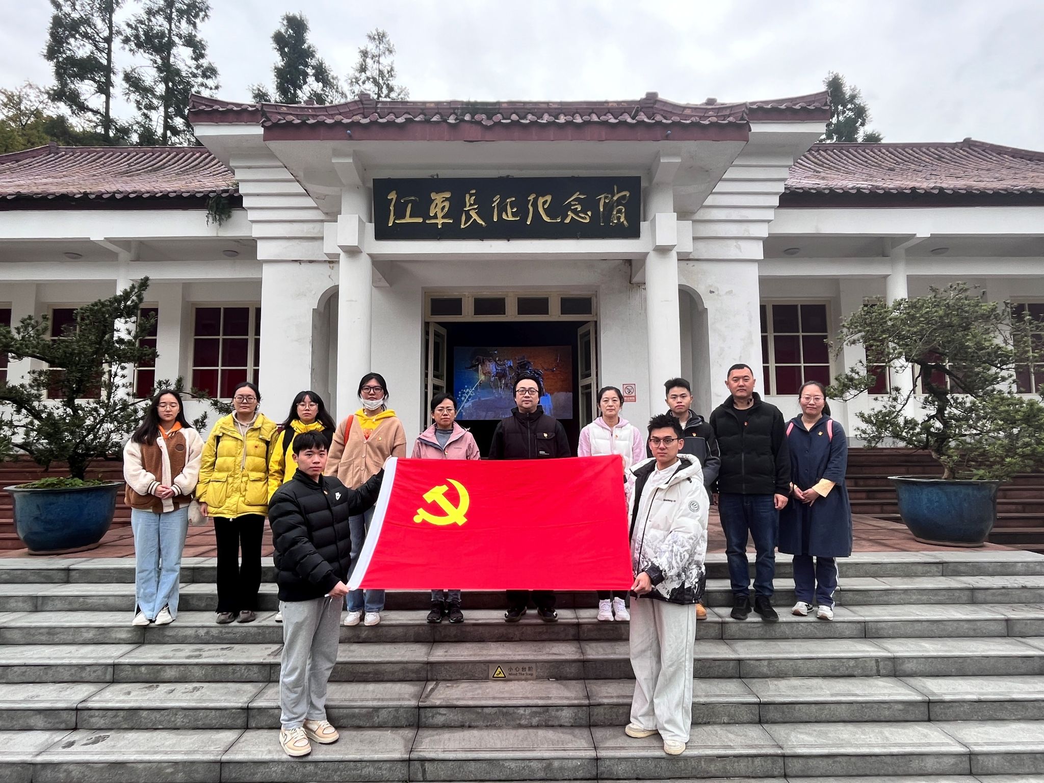20231116日,av影片 教工党支部、av影片 “双卓越”培养项目党员前往邛崃市红军长征纪念馆开展“弘扬长征精神 砥砺前行再出发”主题党日活动。av影片 党总支书记甘霖、副书记王霞带领教工党支部全体同志和“双卓越”培养项目学生党员,吕绍龙、吴佳朔、王有鹏、吕笑晴、蒋紫依、王宇莹、袁婧雯同志共同参加了此次主题党日活动,师生党员共同缅怀红军长征的伟大历史,以实际行动传承红军长征精神。