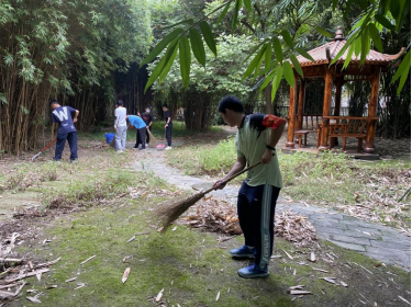 随后,党员先锋队员们与驻院导师们共同带领和指导2022级土木茅以升班的同学们开展了书院清扫活动。五位先锋队成员分别带领五队同学在筑梦园内劳动清扫。在各位同学和老师们的辛勤劳动之下,筑梦园焕然一新。